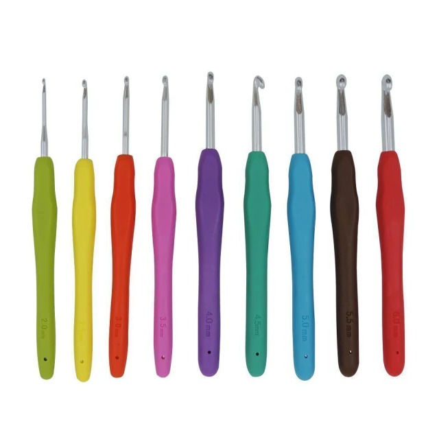 Cartela 9 Agulhas de Crochê com Cabo Soft, um kit projetado para proporcionar conforto e leveza durante o trabalho manual. Com tamanhos variados (2 mm a 6 mm), é ideal para quem busca precisão e uniformidade em projetos de crochê. O cabo soft ergonômico reduz a fadiga nas mãos, sendo perfeito para longas sessões de artesanato. Compatível com marcas como Clover e Prym, este conjunto é versátil para iniciantes e experientes.
